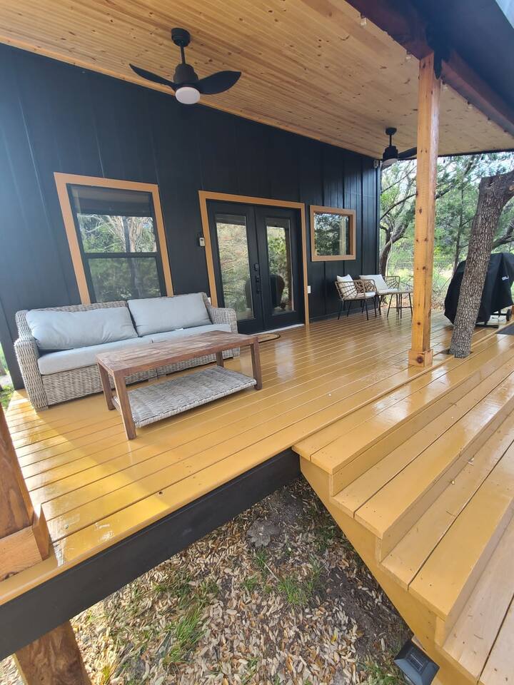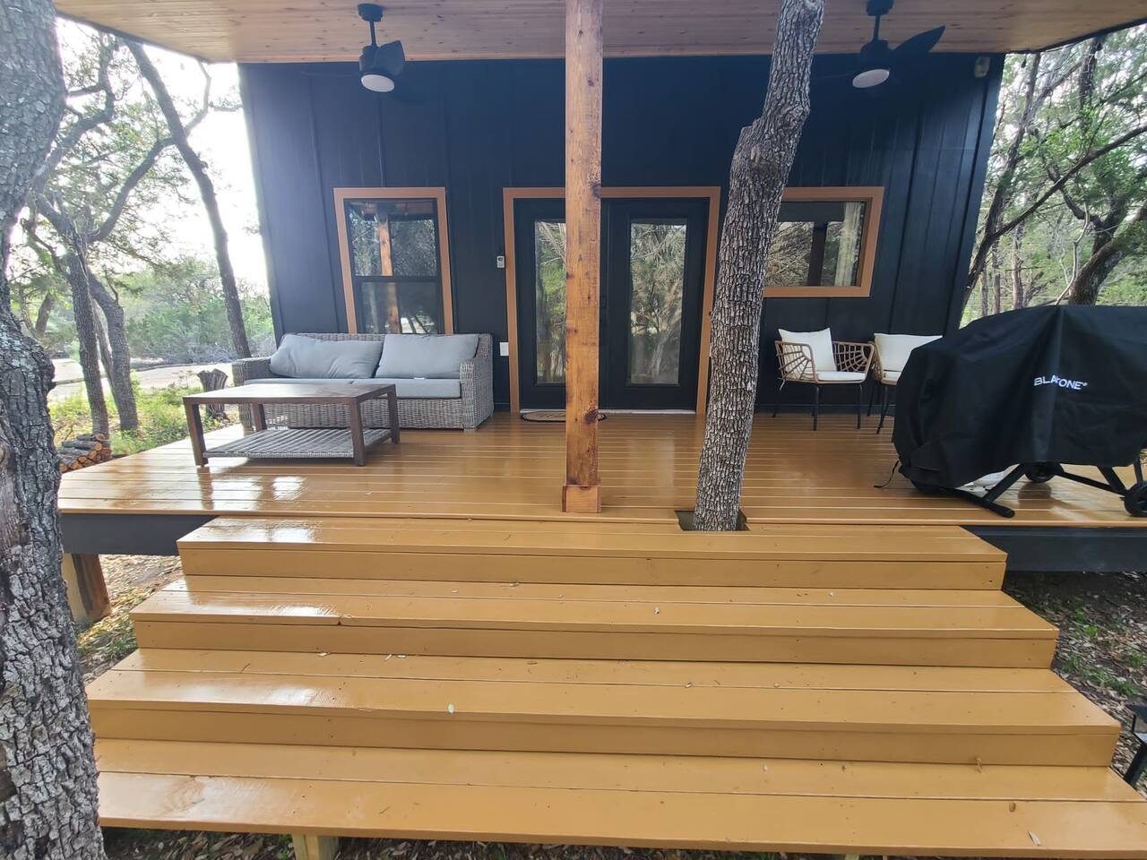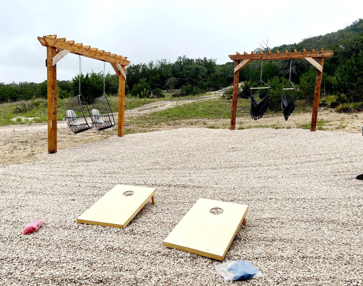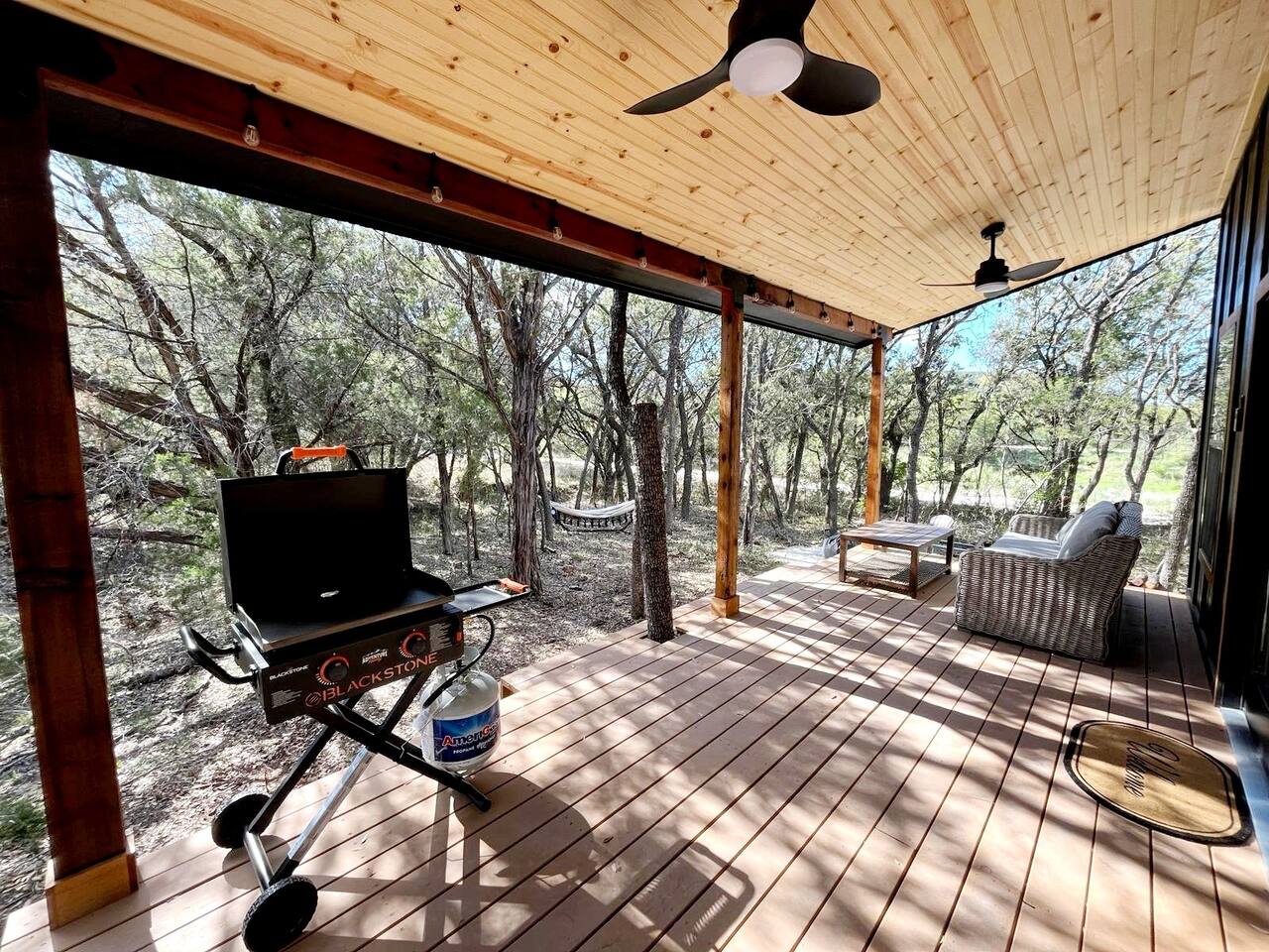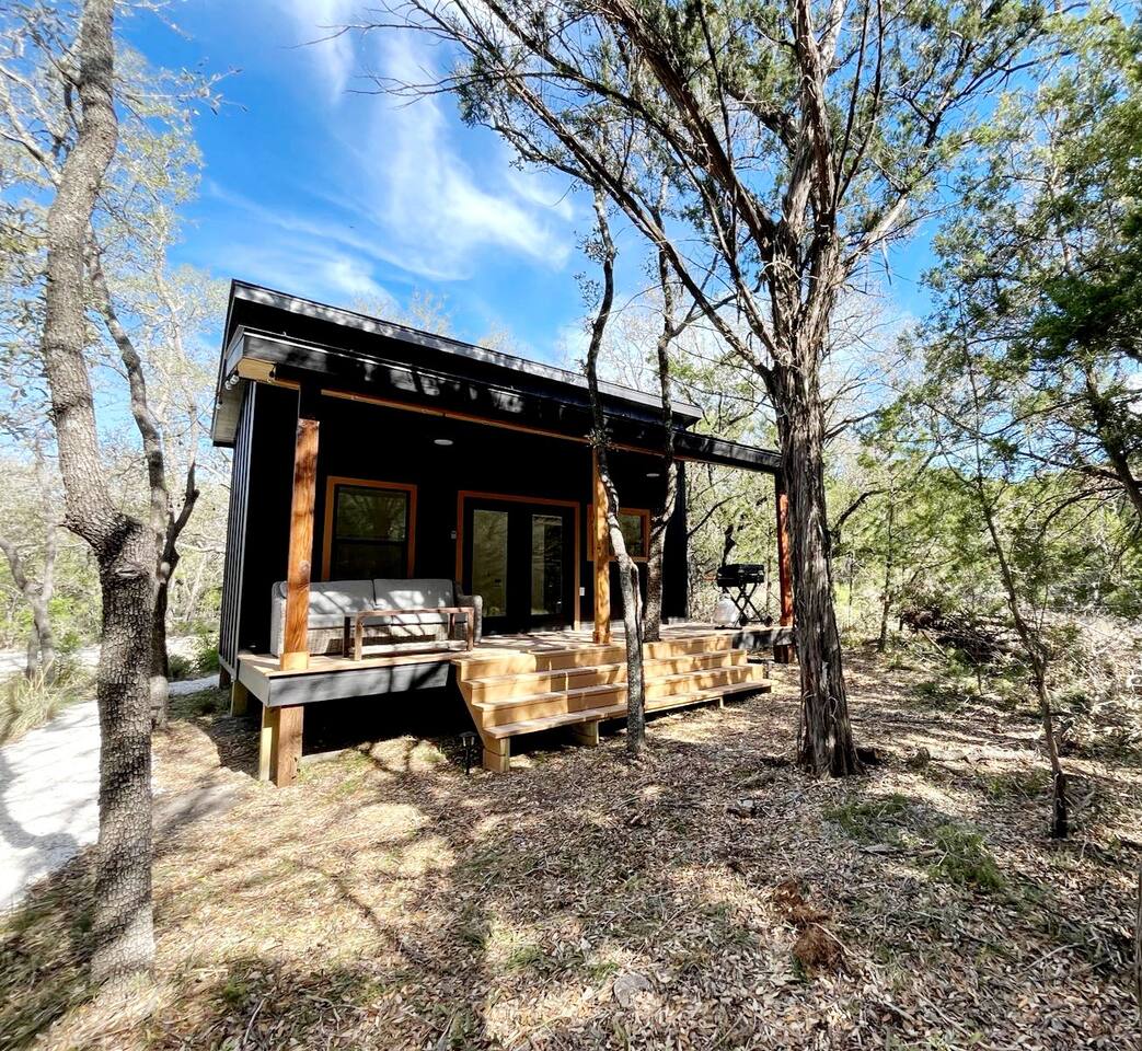 Nestled on 5 acres of scenic land, Dreamers Ranch offers a retreat for those looking to reset, relax, and reconnect with nature. Our collection of cozy cabins is designed to help you unplug and experience the beauty of the outdoors. The ranch is just a 5-minute drive from the nearest water hole for a refreshing dip in the river. Walk the property and enjoy the art of doing nothing. This modern cabin features a Cozy layout to help your feel the outdoor living. With a open bedroom with a queen size bed, bathroom, sink, small fridge, and outdoor griddle to cook. Outside, you'll find a charming fire pit for Cozy evenings under the stars and a hammock for ultimate relaxation. Surrounded by lush forest, this cabin offers an escape into nature. We are a 5-minute drive from the river, 10 minutes from Happy Hollow Drop off and 12 minutes from Garner State Park