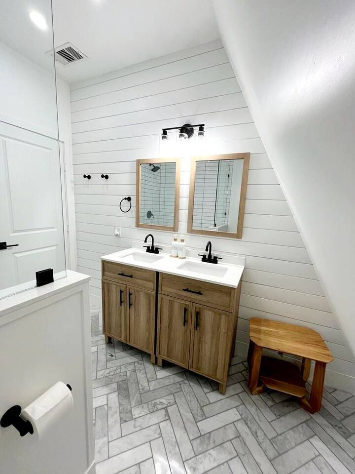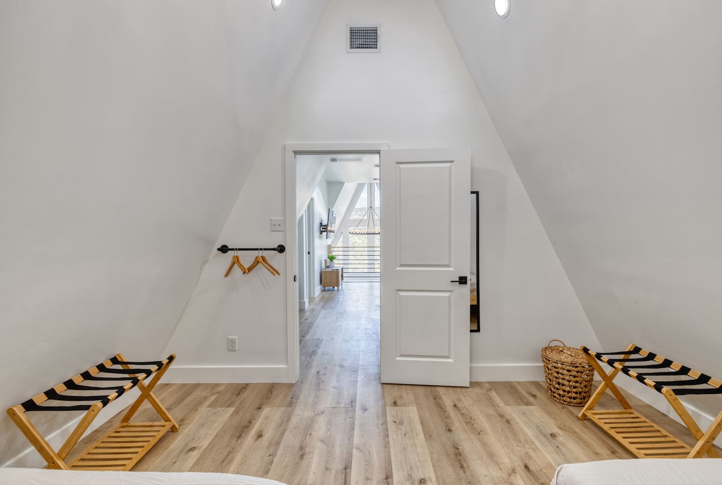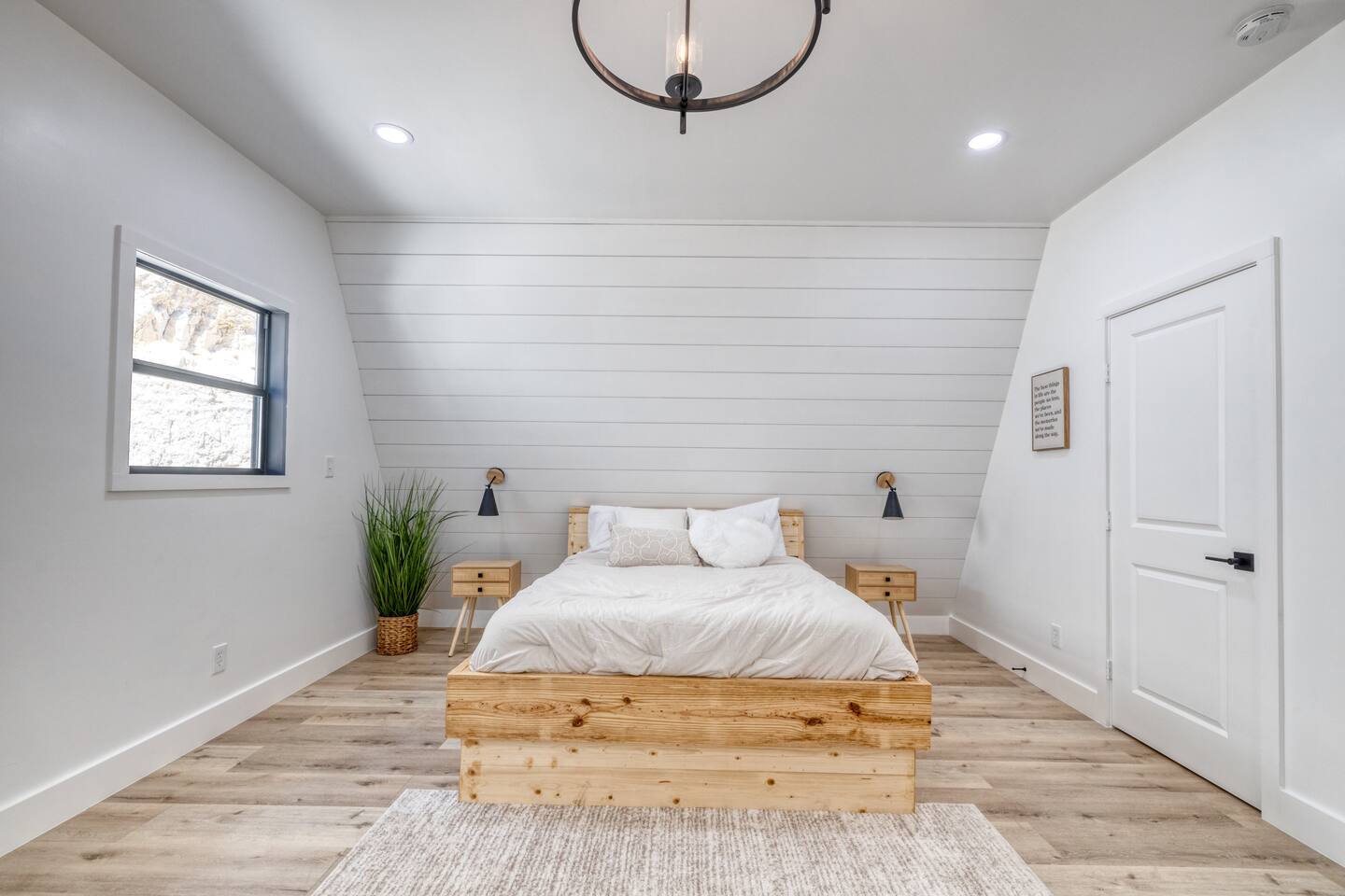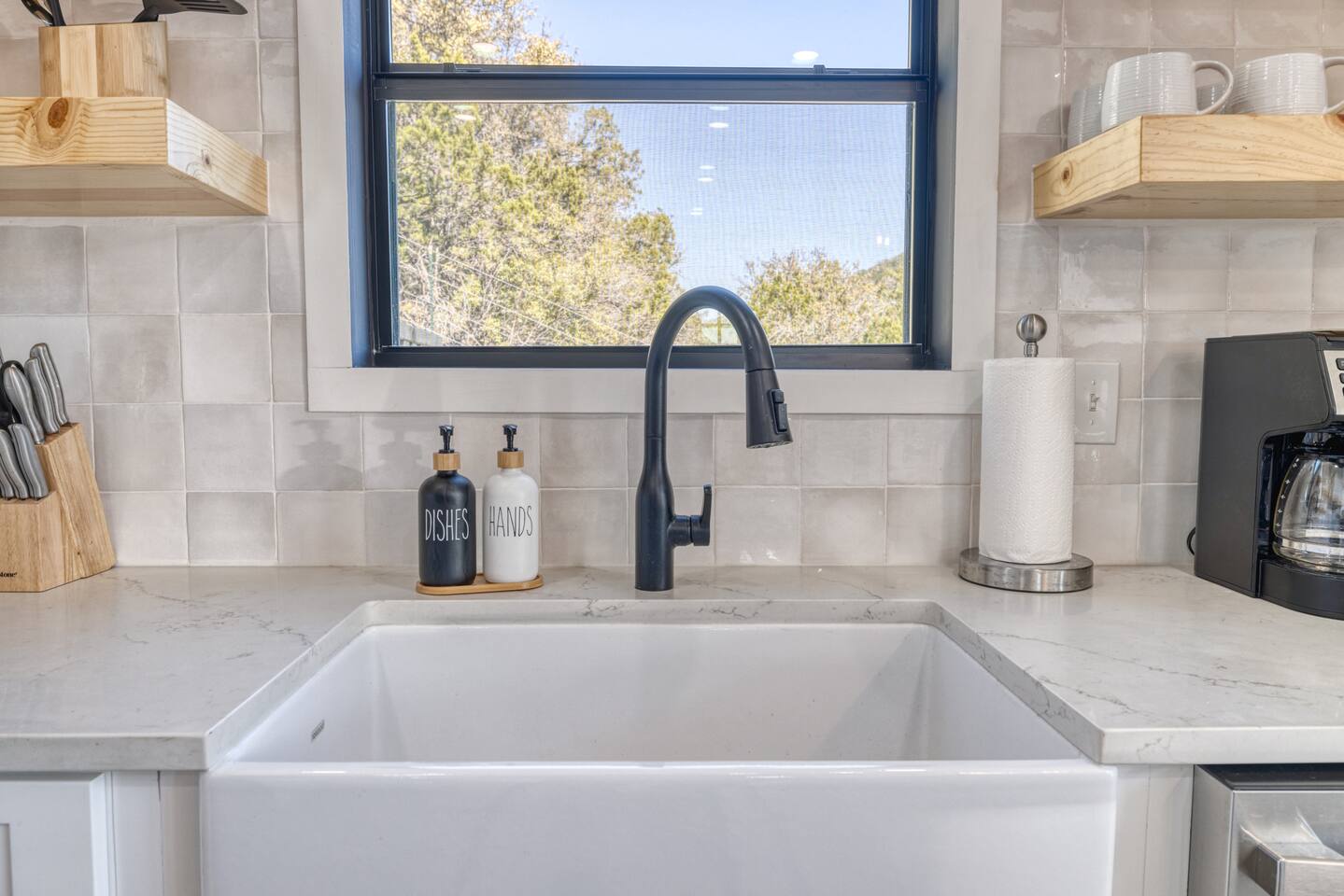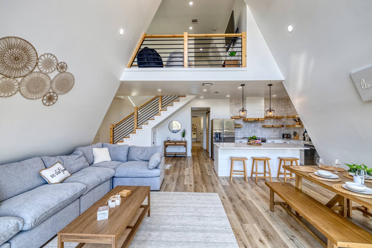 Welcome to our 5 acres Aframe home which leads you up a hill with an amazing view, which makes you feel like you're in heaven This Luxury cabin has everything you DREAMED of and we are only about a 7 minute drive to the nearest acess to the Frio River. The living area feels cozy, yet spacious with a high ceiling that shows off beautiful Pine Wood beam with a Country Living Chandelier. The A-frames giant windows overlooking the deck and the hills makes you bring the outside beauty in. It features the comfiest sofa, dining area, and our custom Pine Wood continues with the decor into our fully stocked kitchen. . The large downstairs bedroom features a queen bed, a beautiful stoned electric fireplace, a stylish reading egg chair, luggage bench, and of course a 55' Smart TV. The main bathroom is downstairs just beside the bedroom and features a luxury walk-in shower, with double vanity. Across from it you have a washer and dryer for your convenience. Then you get to go up the most beautiful custom-made stairs that continues the Pine wood with a natural wood stain that leads you to the open loft area. We offer a sofa bed, tons of board games for the kiddos and of course a 60'' Smart TV. The first bedroom upstairs has 4 twin size custom bunk beds which also gives you an amazing view out of this bedroom window. The second bedroom upstairs features 2 full size custom beds with a stylish A-frame shiplap accent wall and of course the beaty of a custom beam in the high ceiling. Second bathroom is also a walk-in shower with a modern style decor. Just outside the living room doors is the large deck with a modern outdoor seating couch, a gas fireplace, and a gas grill. While this cabin makes an ideal spot for a romantic getaway, honeymoon, wedding night, anniversary, or spiritual get aways, it's also wonderful for family and friends. Other friendly amenities included is a swings down the hill with a couple of Egg Chairs and Hammick swings, with some lounge chairs by a wood fireplace to make some smores. We are a 5 minute drive from the river, 10 minutes from Happy Hollow Drop off and 12 minutes from Garner State Park. Enjoy this beauty!! We do have a outdoor camaras at entrance door only.