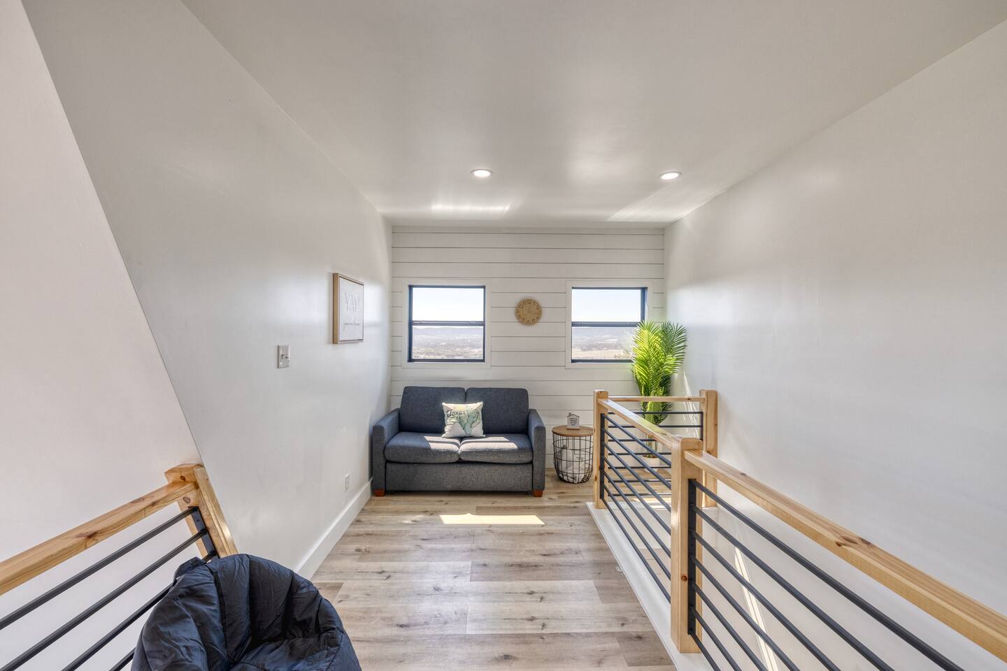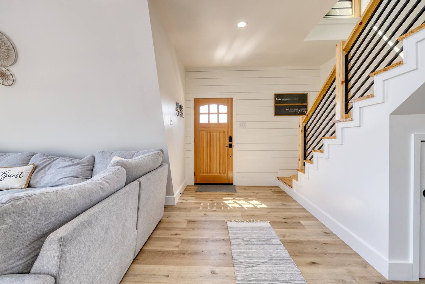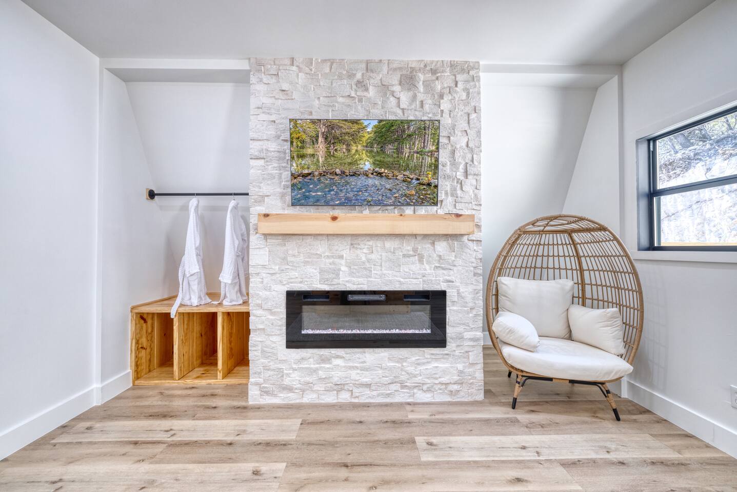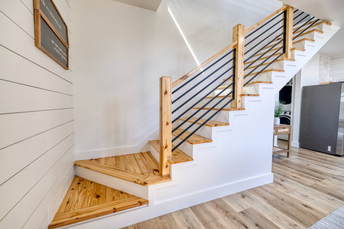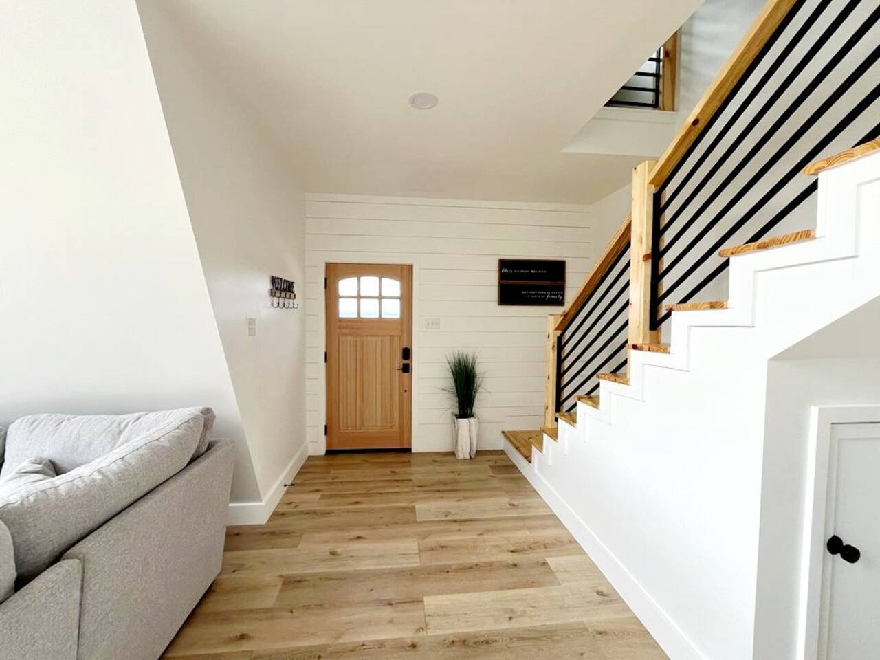 Welcome to our 5 acres Aframe home which leads you up a hill with an amazing view, which makes you feel like you're in heaven This Luxury cabin has everything you DREAMED of and we are only about a 7 minute drive to the nearest acess to the Frio River. The living area feels cozy, yet spacious with a high ceiling that shows off beautiful Pine Wood beam with a Country Living Chandelier. The A-frames giant windows overlooking the deck and the hills makes you bring the outside beauty in. It features the comfiest sofa, dining area, and our custom Pine Wood continues with the decor into our fully stocked kitchen. . The large downstairs bedroom features a queen bed, a beautiful stoned electric fireplace, a stylish reading egg chair, luggage bench, and of course a 55' Smart TV. The main bathroom is downstairs just beside the bedroom and features a luxury walk-in shower, with double vanity. Across from it you have a washer and dryer for your convenience. Then you get to go up the most beautiful custom-made stairs that continues the Pine wood with a natural wood stain that leads you to the open loft area. We offer a sofa bed, tons of board games for the kiddos and of course a 60'' Smart TV. The first bedroom upstairs has 4 twin size custom bunk beds which also gives you an amazing view out of this bedroom window. The second bedroom upstairs features 2 full size custom beds with a stylish A-frame shiplap accent wall and of course the beaty of a custom beam in the high ceiling. Second bathroom is also a walk-in shower with a modern style decor. Just outside the living room doors is the large deck with a modern outdoor seating couch, a gas fireplace, and a gas grill. While this cabin makes an ideal spot for a romantic getaway, honeymoon, wedding night, anniversary, or spiritual get aways, it's also wonderful for family and friends. Other friendly amenities included is a swings down the hill with a couple of Egg Chairs and Hammick swings, with some lounge chairs by a wood fireplace to make some smores. We are a 5 minute drive from the river, 10 minutes from Happy Hollow Drop off and 12 minutes from Garner State Park. Enjoy this beauty!! We do have a outdoor camaras at entrance door only.
